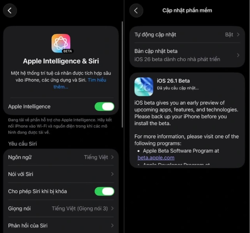 2. Vietnamese Apple Intelligence appears on iOS 26.1 Beta