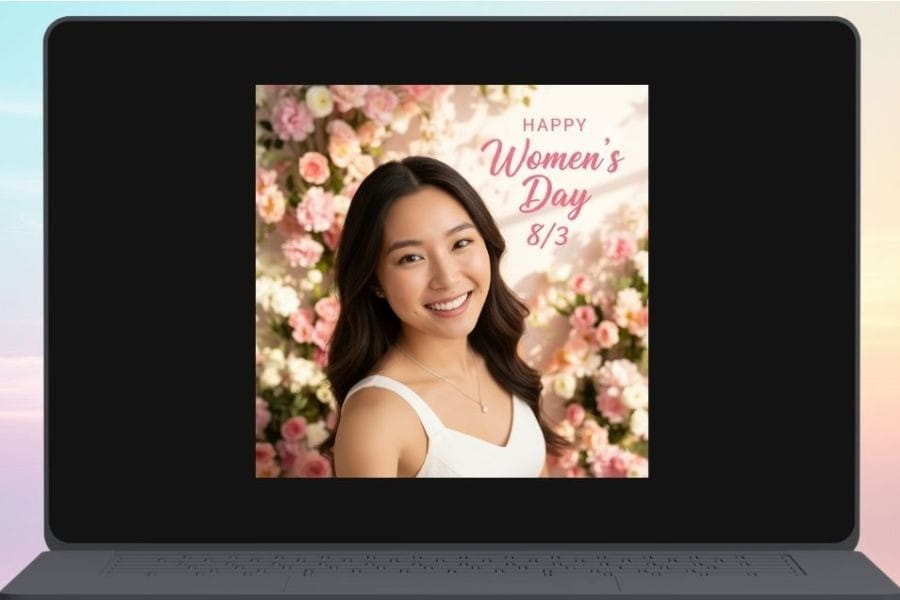 Prepare a detailed prompt description: In addition to style, include elements such as dominant colors, types of flowers, lighting effects, outfits, and even text you want to appear (e.g., “Happy Women’s Day 8/3”). The more detailed your description, the better the AI can understand your idea and produce impressive results.