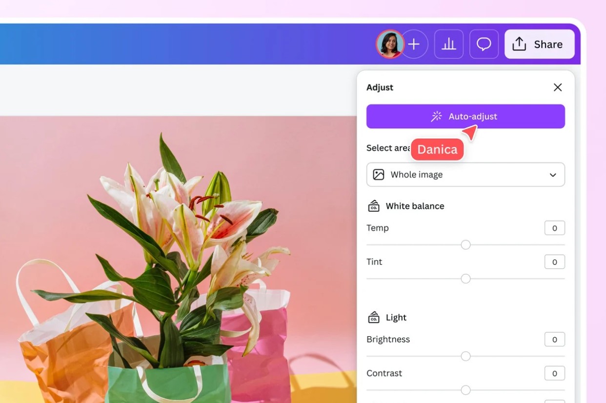 For situations requiring quick edits, the Auto-Adjust feature is an ideal option. With just one click, Canva will automatically optimize key parameters to instantly enhance your image. You can then fine-tune it further if you want more control over the details.