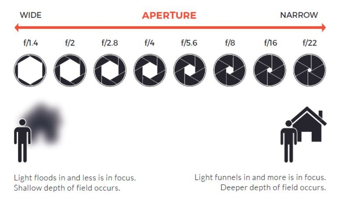 Aperture is the size of the lens opening, denoted by the F-number (such as f/1.8, f/4, f/11...). When the aperture is large (i.e., a small F-number), more light enters the camera, resulting in brighter images and a shallower depth of field, creating a slightly blurred background and an attractive bokeh effect. Conversely, a small aperture (large F-number) allows less light in, resulting in darker images but a greater depth of field, with sharp details in both the foreground and background. Understanding aperture helps you control the degree of bokeh and create depth in your images, especially useful when shooting portraits or landscapes.