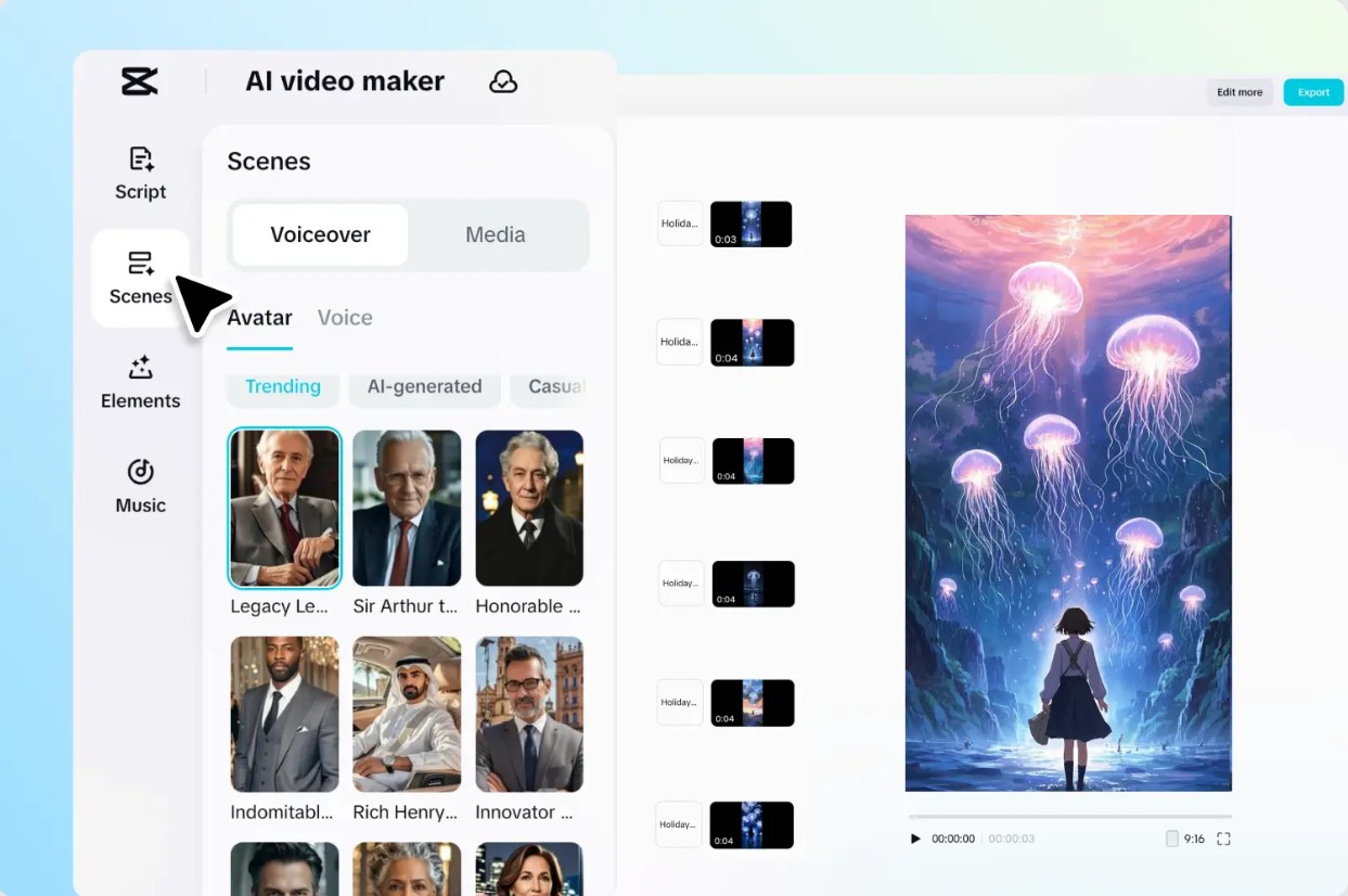 CapCut's AI Video Creator 2.0 helps you quickly turn ideas into complete videos. With AI-generated storyboards, no video editing experience is required.
