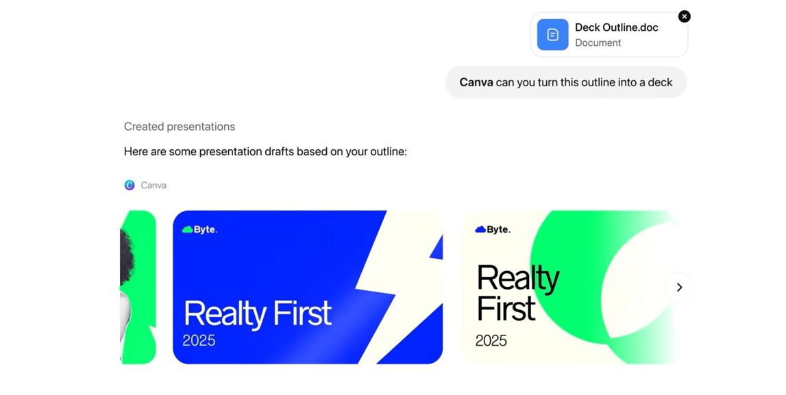 The good news is that everything happens in the chat. If you’re not satisfied, just say, “Make the text more prominent and change the background to blue,” and ChatGPT will send the command to Canva, and the new design will appear immediately. If you want to fine-tune further, you can click “Edit in Canva” to open the file in the original Canva interface, ensuring all the advanced features remain intact.