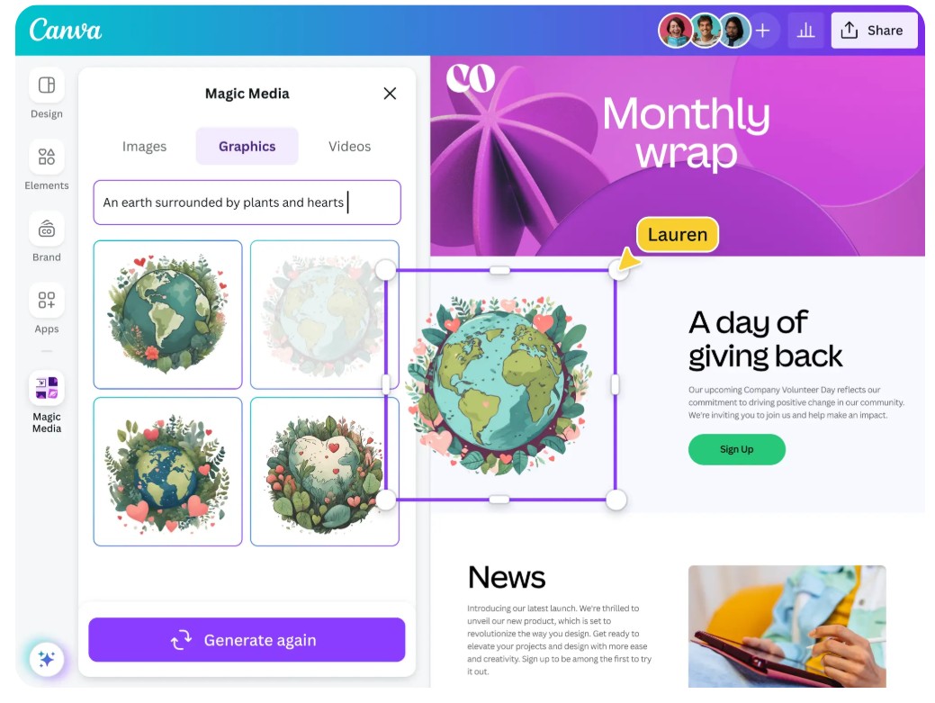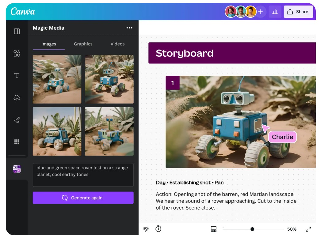 Canva understands that design is not just about creating beautiful images, but also about turning ideas into meaningful visual stories. So, incorporating AI into the platform is not about replacing humans, but about expanding your imagination to help you design faster, more creatively, and more freely than ever before.