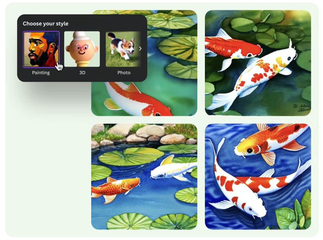 One of the coolest things about the AI Image Maker in Canva is its ability to support multiple styles, making it easy to define the aesthetic of your project from the get-go.