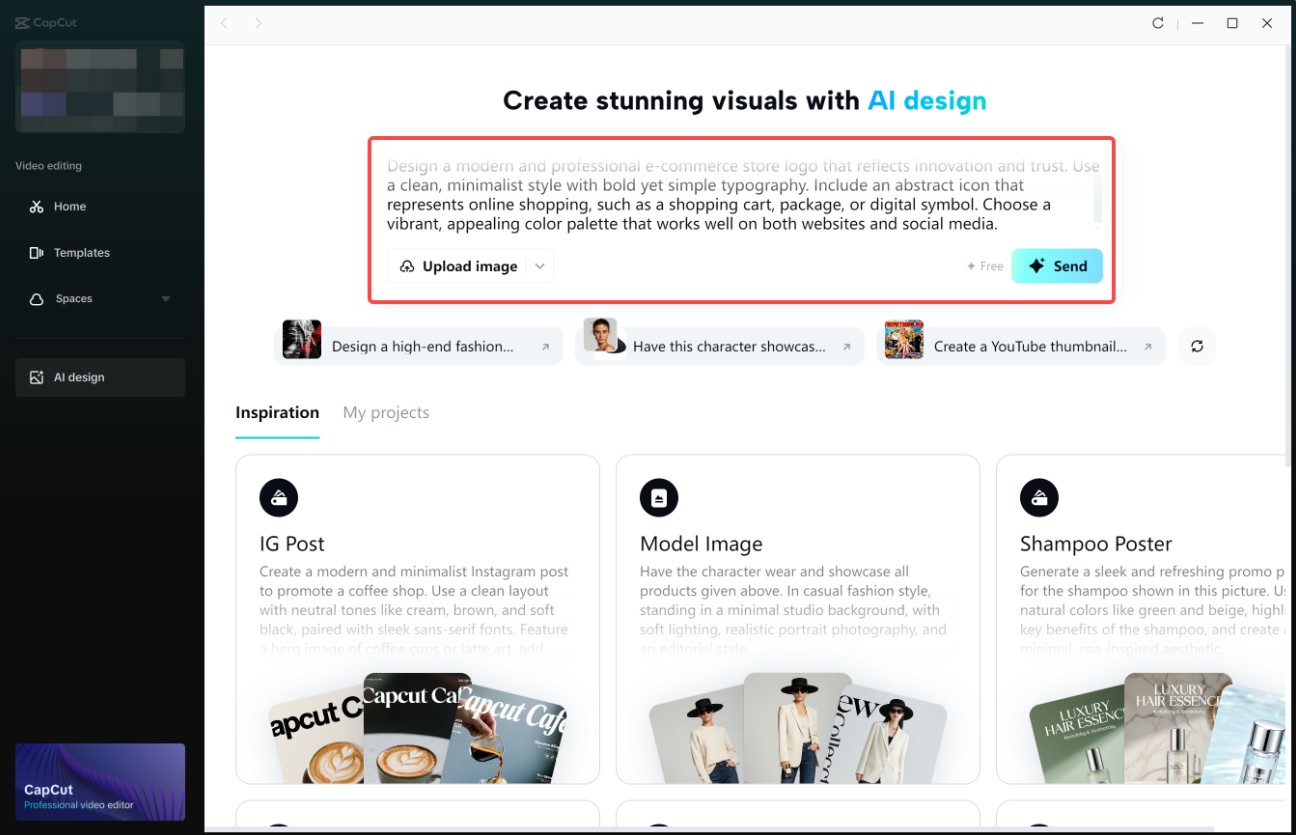 CapCut also offers a web-based AI Design version , allowing users to create logos online without installing any software.
