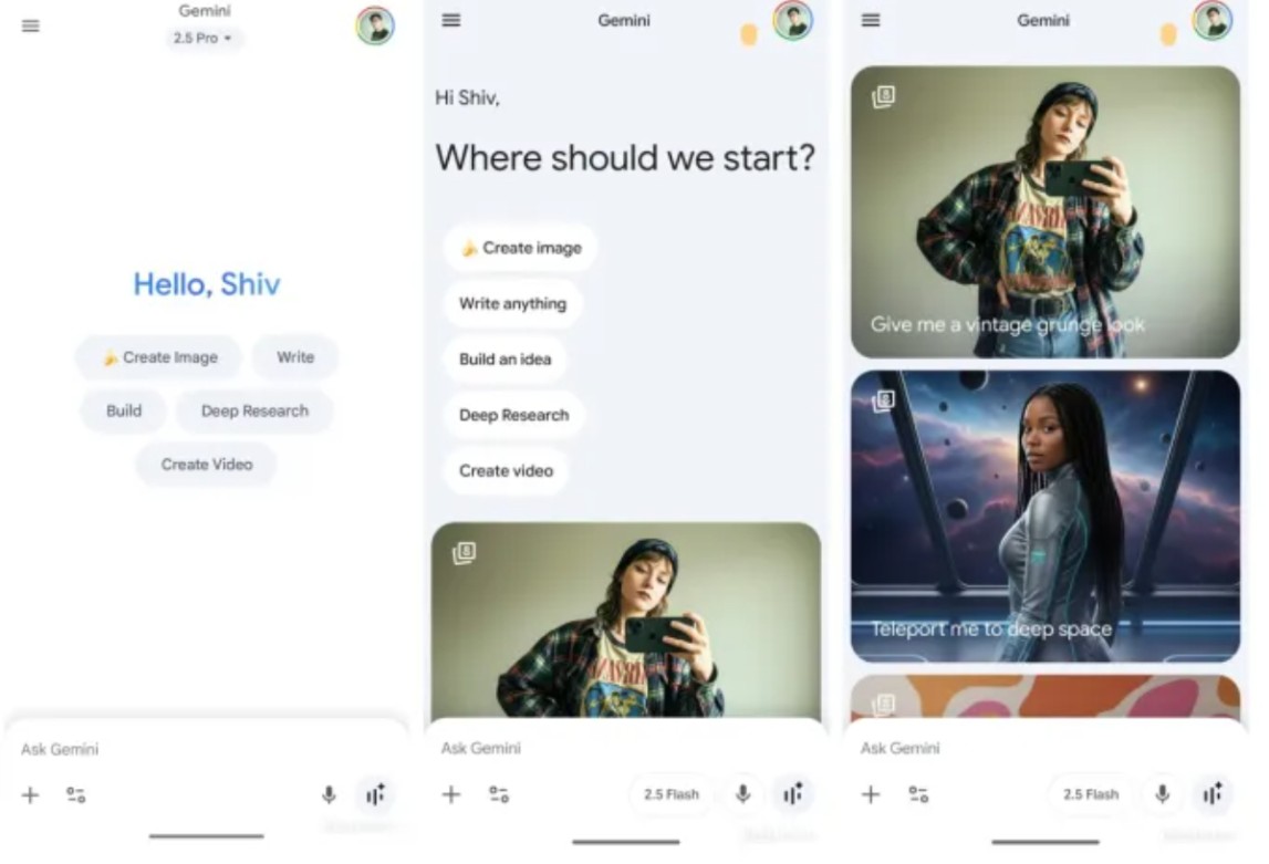 The new design has a clear goal: to make Gemini a space for discovery, creativity, and personalization. Instead of waiting for users to initiate a conversation, Gemini proactively suggests ideas, tasks, or next actions. For example, when you open the app in the morning, you might see suggestions like “Create a daily newsletter,” “Find inspiring images for a new project,” or “Suggest quick breakfast recipes.”