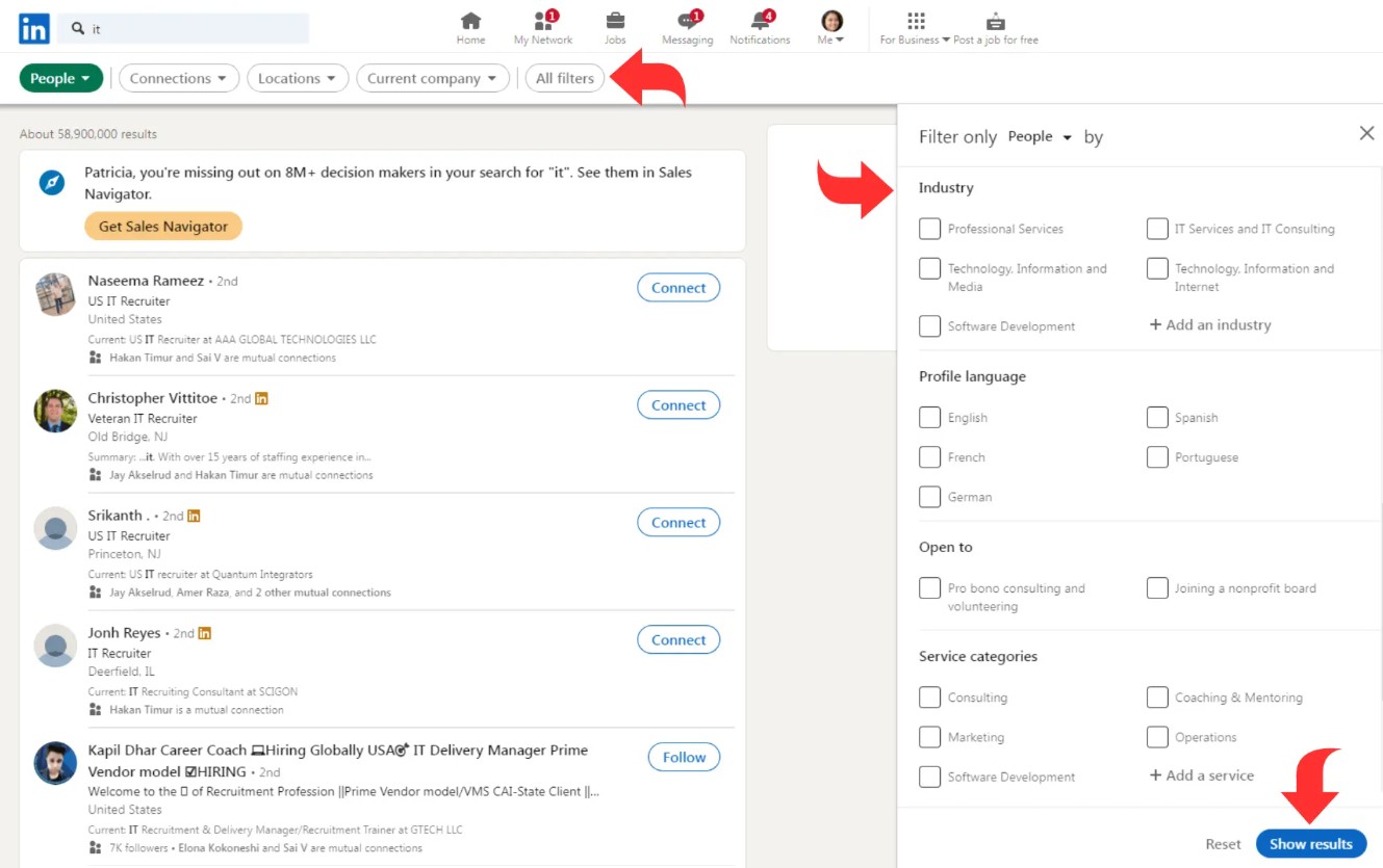 LinkedIn also offers advanced search tools that help you connect with employers, professionals, colleagues, or industry influencers. This opens the door to building a broad and high-quality professional network.