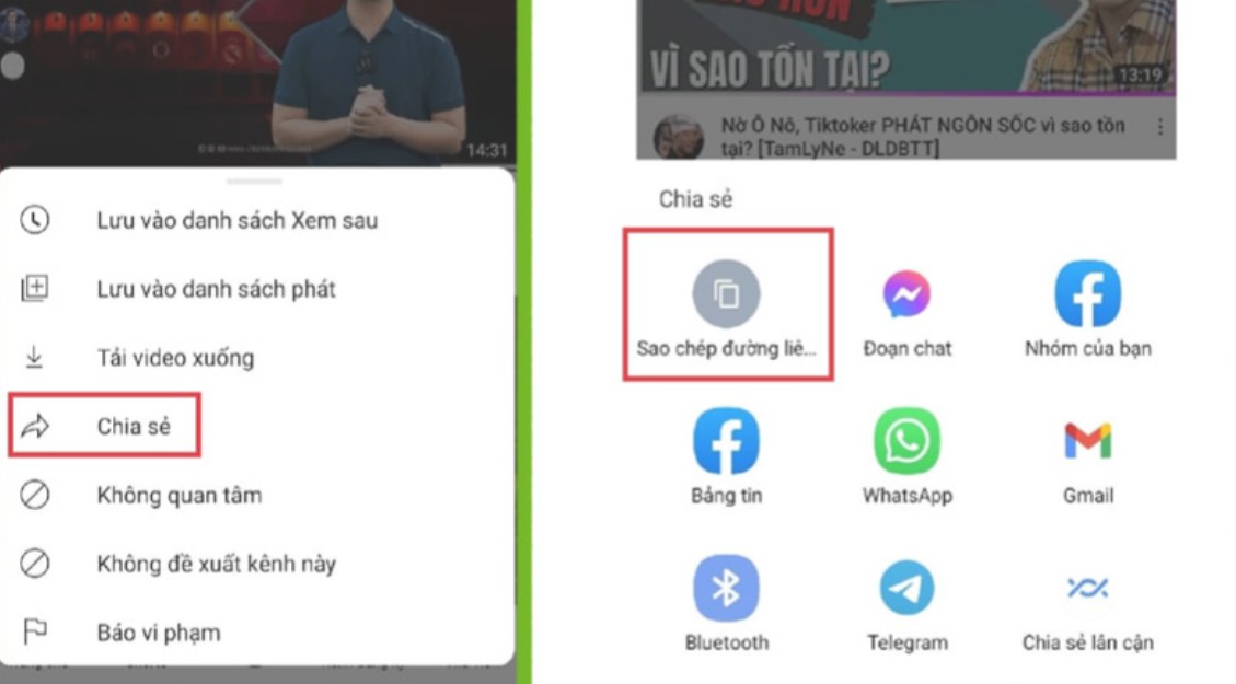 Access the YouTube video you want to download. Click the Share button and select Copy link.