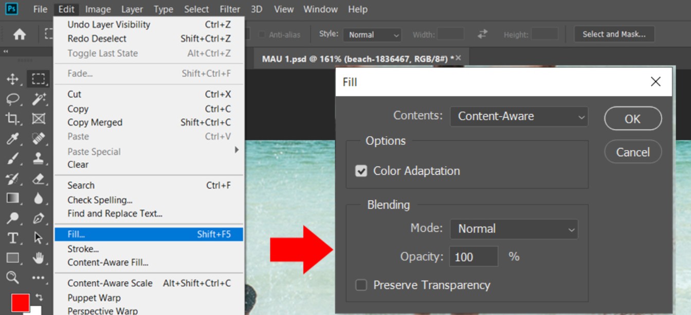 2. Steps to remove people in Photoshop with Content-Aware Fill