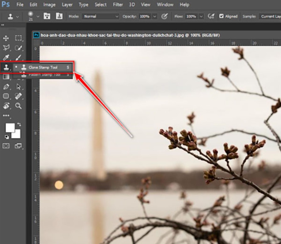 The Clone Stamp Tool works on the principle of “sampling”. When you hold down the Alt key and click, Photoshop will remember that area as a template. Then, when you brush over the area you want to erase, the software will overwrite the sample content in the new location, pixel by pixel. This method requires meticulousness, but in return, you have complete control over the results, from the direction of light, color transitions to material textures.