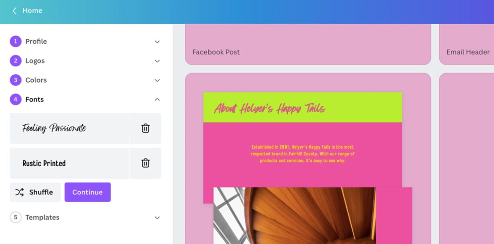 Many brands often use a primary and a secondary font. The primary font is usually highly distinctive, used for headlines, taglines, or brand highlights. Meanwhile, the secondary font is used for longer text content due to its readability. When choosing fonts, it's important to ensure the two fonts harmonize and complement each other. Canva even has a shuffle feature to suggest font combinations if you're unsure which to choose.