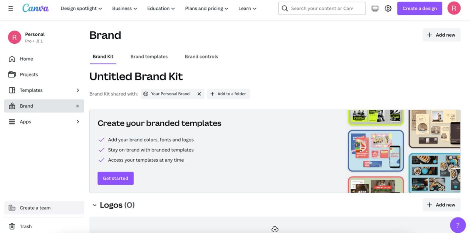 Canva's Brand Kit is a space designed for users to store, organize, and automatically apply brand identity elements to any design project. With a Brand Kit, all essential components like logos, color palettes, fonts, branding templates, etc., are centralized in one place. Upload them once, and you can use them consistently in all subsequent designs.