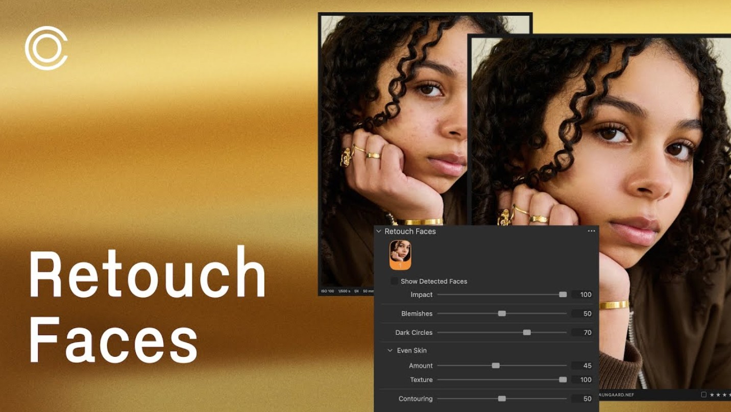 Retouch Faces in Capture One 16.6 solves this problem completely. The new AI tool automatically recognizes small imperfections like pimples, wrinkles, dark circles, and uneven skin tone, then refines them precisely. With just a few clicks, you can remove pimples, brighten the eye area, reduce wrinkles, and even add a contouring effect. Crucially, the original skin texture is preserved, resulting in a soft but not “fake” result. This is especially important as clients increasingly demand more “real” images instead of over-editing.