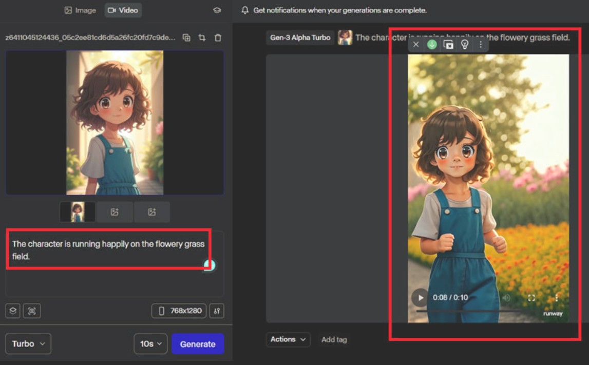 After creating the character and background, the next step is to add movement. Runway ML is AI software that integrates motion capture technology, helping you create natural-looking character movements.