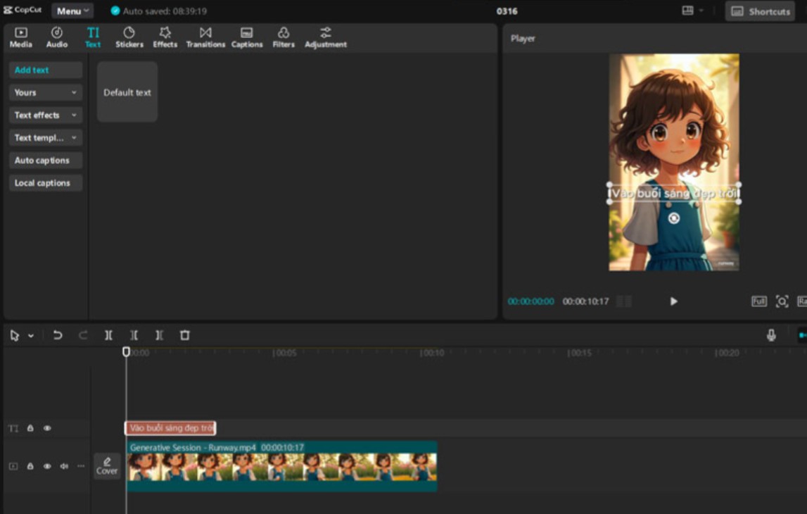 If you want a natural-sounding character voice, CapCut can create an AI voice based on the text you provide. You can also add visual effects, adjust lighting, and color to ensure the entire film is consistent.