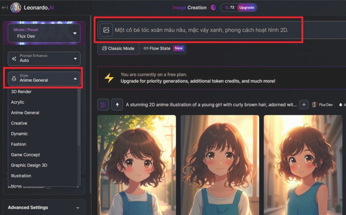 Leonardo AI is one of the leading tools for creating high-quality animation. You can input character descriptions in text, and the AI will generate sharp images in your preferred anime, cartoon, manga, or 3D style.