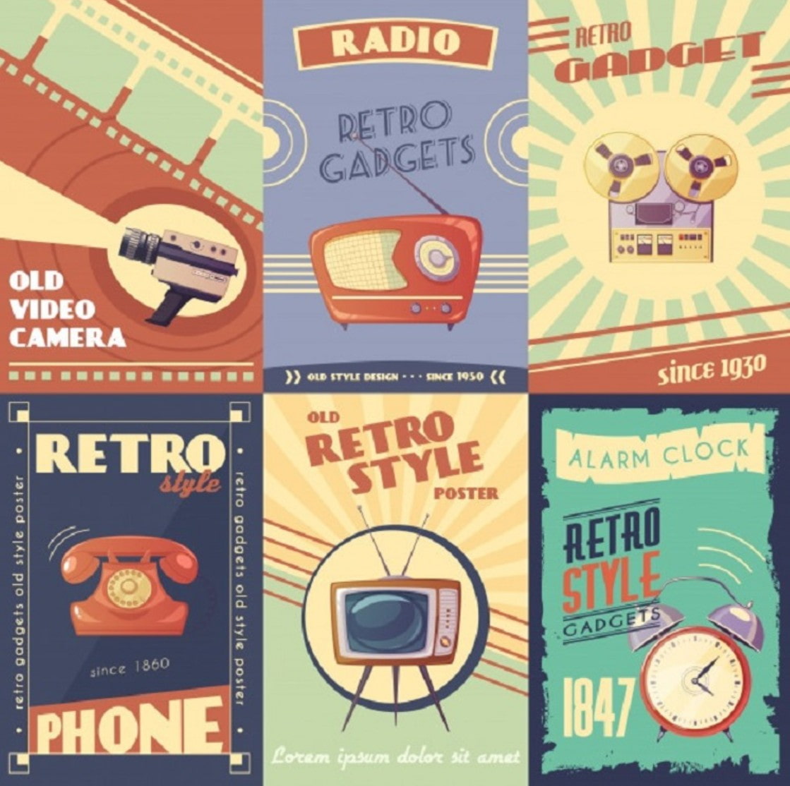 The Retro style emerged around the 1950s, a period when the creative industries began to flourish, with art, design, music, fashion, and popular culture thriving. It was the era of box TVs, radios, vintage cars, vibrant colors, and distinctive typography reminiscent of classic signs, theaters, cinemas, and advertisements. Therefore, Retro is not just a design style, but also represents an entire artistic landscape of the previous century.