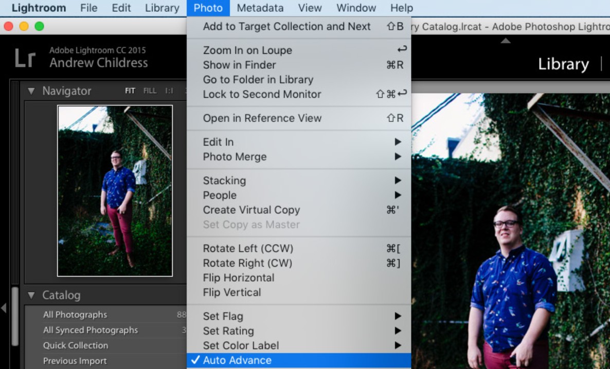 If you don't want to use the Caps Lock key, you can turn Auto Advance on or off manually by going to the Photo > Auto Advance menu . Once you get used to this feature, you'll find it speeds up your workflow by several times, especially useful when processing thousands of photos in large shoots.