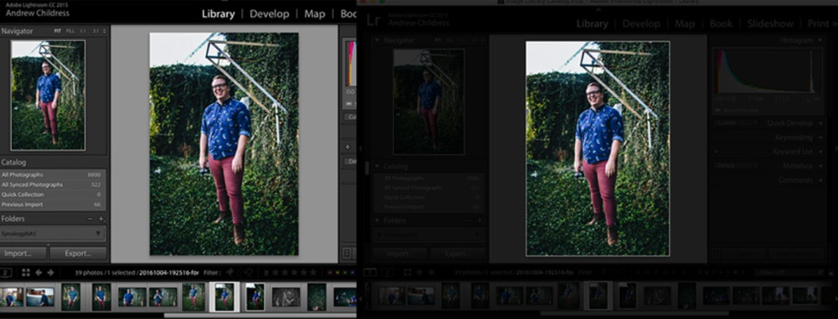 When you're in the Library or Develop module, simply pressing the L key on your keyboard will automatically darken the interface around your photo, leaving only the main image clearly visible on the screen. Pressing the L key a second time will turn the entire interface completely black, allowing you to focus completely on your photo. Pressing it a third time will return Lightroom to its normal state.