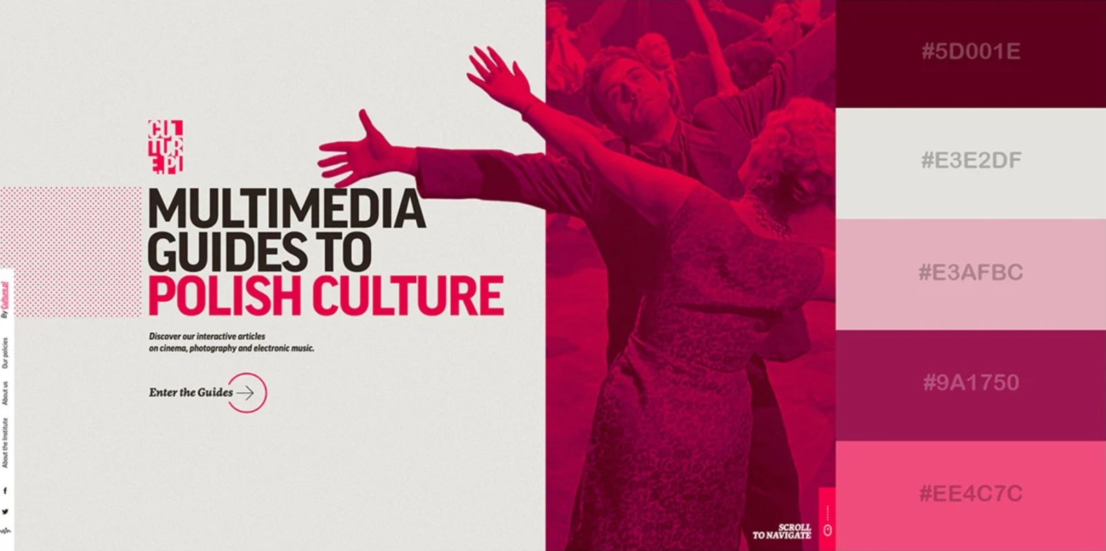 Inspired by the Polish flag, this color palette uses crimson, hot pink, and a light gray base to create a minimalist yet creative style.