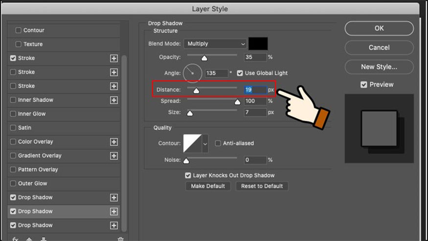 Step 4: Adjust Drop Shadow and Distance similarly to step 2.