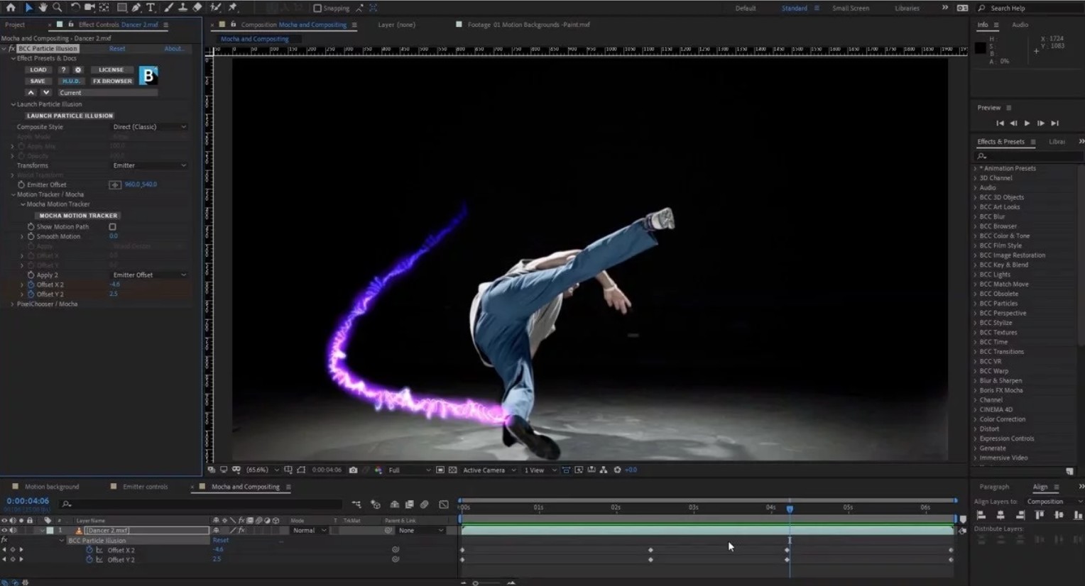 Special effects in blockbuster films, simulated lighting, shattering effects, flying particles, moving typography, or 2D animation can all be handled in AE.